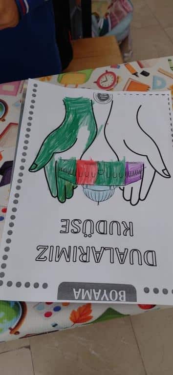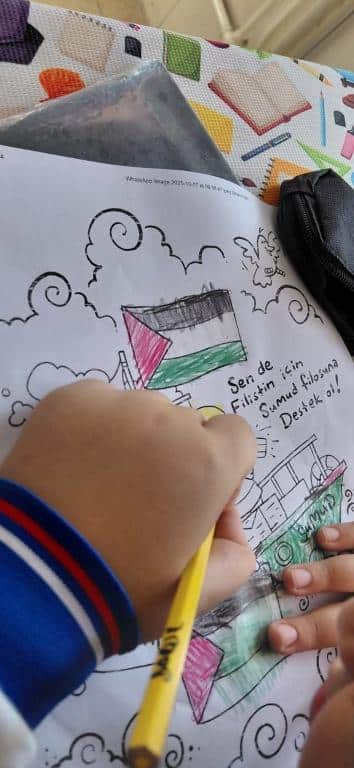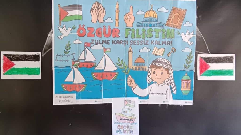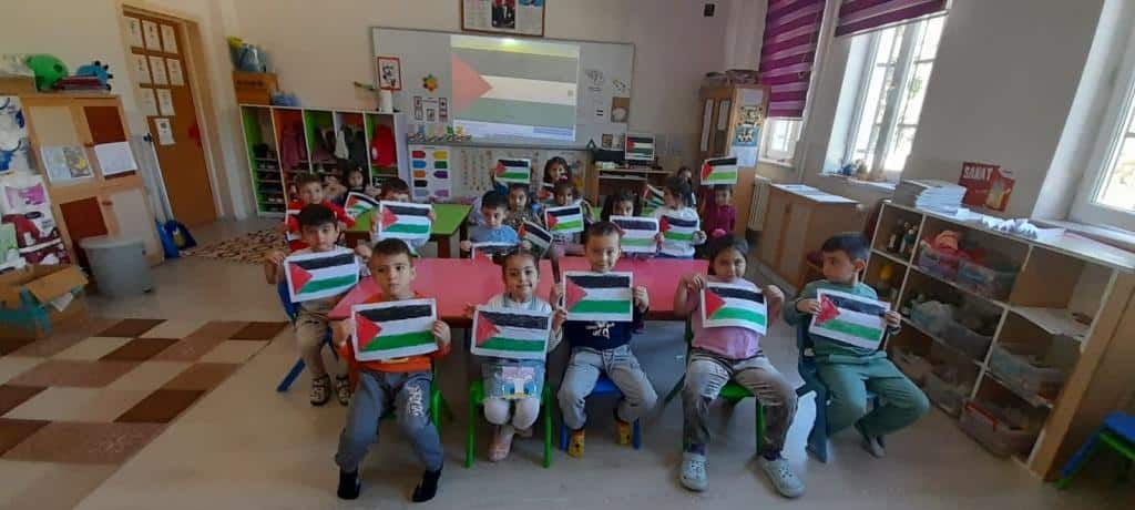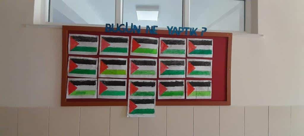 7 Ekim Filistin Farkındalık Günü kapsamında okulumuz öğrencileri tarafından anlamlı bir etkinlik gerçekleştirildi. Etkinliğin amacı, Filistin’de yaşanan insani drama dikkat çekmek ve öğrencilerde barış, empati ve insan hakları bilincini artırmaktı.