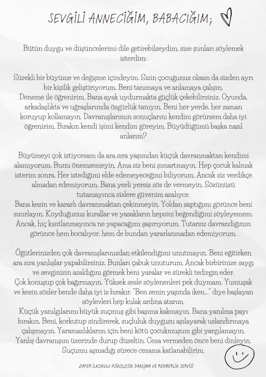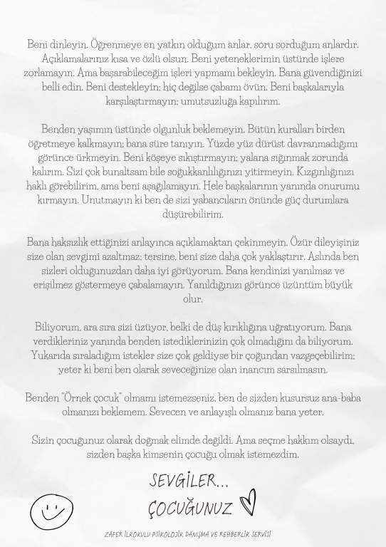 Çocuklarınızdan sizlere mektup var...