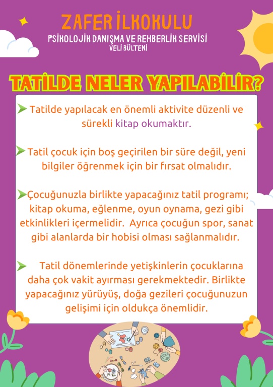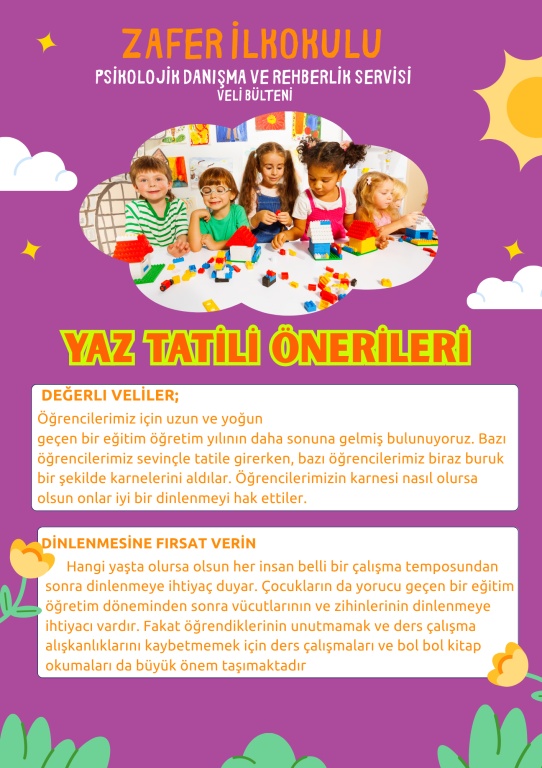 Velilerimize ve öğrencilerimize Yaz Tatili Önerileri
